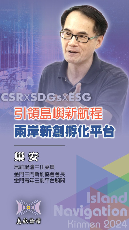 金門要鏈結兩岸發展,首先要打破封閉的政治生態、企業家及島民意識;金門需要在地、旅外及兩岸企業共同協力扶持地方創生及產業振興的力量,這也是筆者推動島航論壇的重要使命。倘能藉由島航論壇在兩岸四地大力倡導ESG,並針對各地需要聚焦於SDGs(聯合國永續發展17項目標),將CSR(企業社會責任)用具體行動展現於地方永續發展,不僅有助於企業形象,更是一種社會責任價值;不只能鼓勵青年創意,更能激發企業內部創新。這肯定是比捐助金錢、物資還要更有意義、更具長遠的效應。
