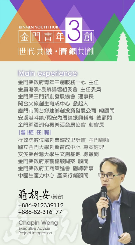 (本文作者翁朝安,島航論壇組委會主任委員、金門縣三門新創發展協會理事長、金門縣政府青年三創服務平台主任、廈門市閩台鄉建鄉創投資發展有限公司總顧問,曾任職金門大學創新育成中心專案經理、台灣中國生產力中心產業行銷資深顧問)